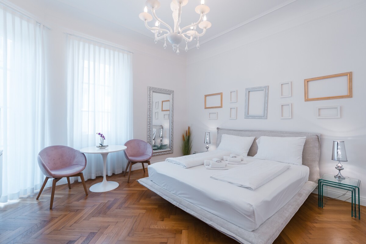 IRIS – luxusní apartmán s následujícím vybavením: • 3 dvoulůžkové ložnice • 2 koupelny s toaletou (s vanou a sprchou) • Moderní plně vybavená kuchyň s jídelním stolem • 1 zařízený balkon Staré Město je vzdálené pouhých 100 metrů • Pouhých 600 metrů od Termálních lázní Merano • 400 metrů od Princova hradu Soukromé podzemní parkoviště v ceně