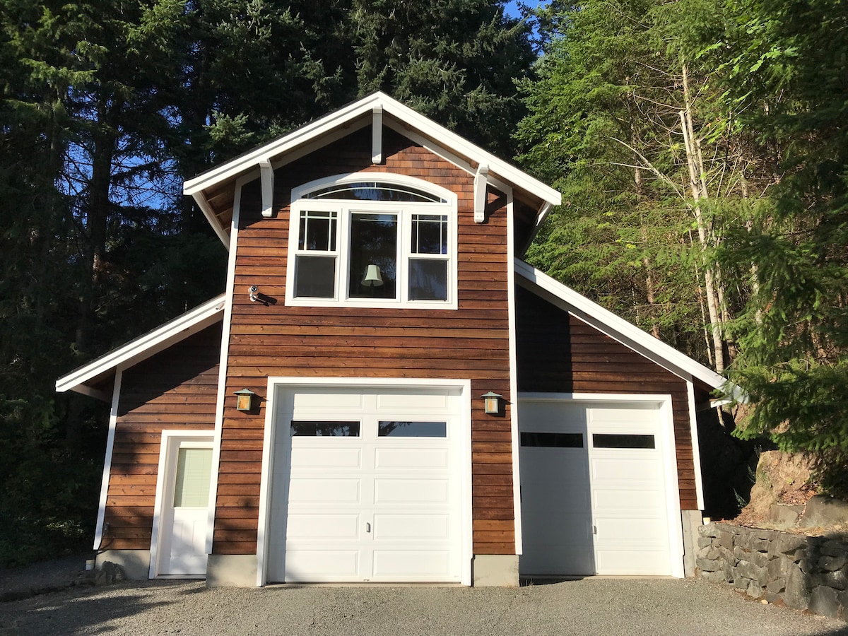 Stejně jako okouzlující horská chata v lese je pocit tohoto poklidného penzionu s výhledem na vodu nad garáží. Z ložnice tě čeká nádherný výhled na oceán a balkon s výhledem do lesa. Kuchyně/obývací pokoj má veškeré potřebné vybavení, ale ty budeš mít vlastní myčku nádobí. K dispozici je pracovní stůl. Naše ubytování je bez domácích mazlíčků pro hosty, kteří trpí alergiemi. Zogs pub and small grocery nearby. Gig Harbor je naše krásná komerční komunita. Harmonogram na 3 měsíce