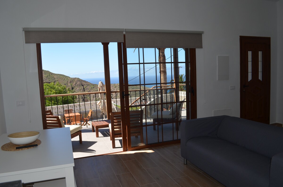 Vítejte u nás! Apartmán Blue View v Alojera může mít nejvíce úchvatný výhled na celý ostrov La Gomera. Slunce zapadá přímo před vašima očima z velkorysé terasy. Jako by to nestačilo, můžete také vidět dva další Kanárské ostrovy z vašeho pohledu. Napravo je La Palma a nalevo je El Hierro. Vždycky nové scény každou noc!