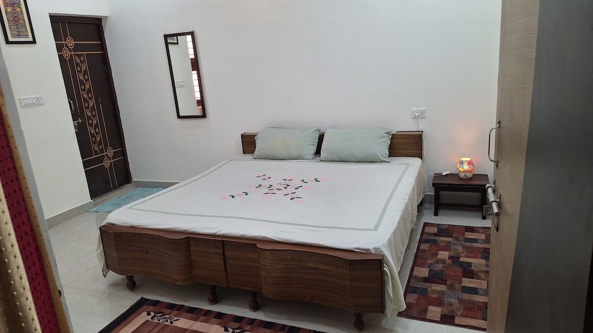 Vítej v naší moderní, ale tradiční vile se 2 pohodlnými postelemi, vlastní kuchyní a vlastní koupelnou. Výhodná poloha jen 2 minuty chůze od letiště Agra a v blízkosti hlavních atrakcí, jako je Tádž Mahal, pevnost Agra a další (cca 5 km / 20 minut). Naše ubytování je ideální pro turisty, služebně cestující, seniory, rodiny a dokonce i domácí mazlíčky. Rádi ti pomůžeme s objednáním taxíku, domácími jídly a dalšími potřebami, aby byl tvůj pobyt hladký a příjemný.