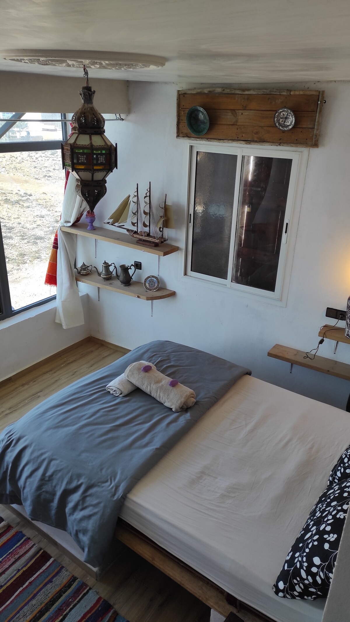 Při pohledu na klidné místo před mořem, pro relaxační pobyt pro vás a celou rodinu, naše chata vás překvapí. Skládá se z ložnice s manželskou postelí a dalším samostatným lůžkem, vlastní koupelny, obývacího pokoje, sdílené kuchyně s hostitelem, terasy s výhledem na moře a další společné. ubytování je 7 km od vesnice Tamri route d 'Essaouira.