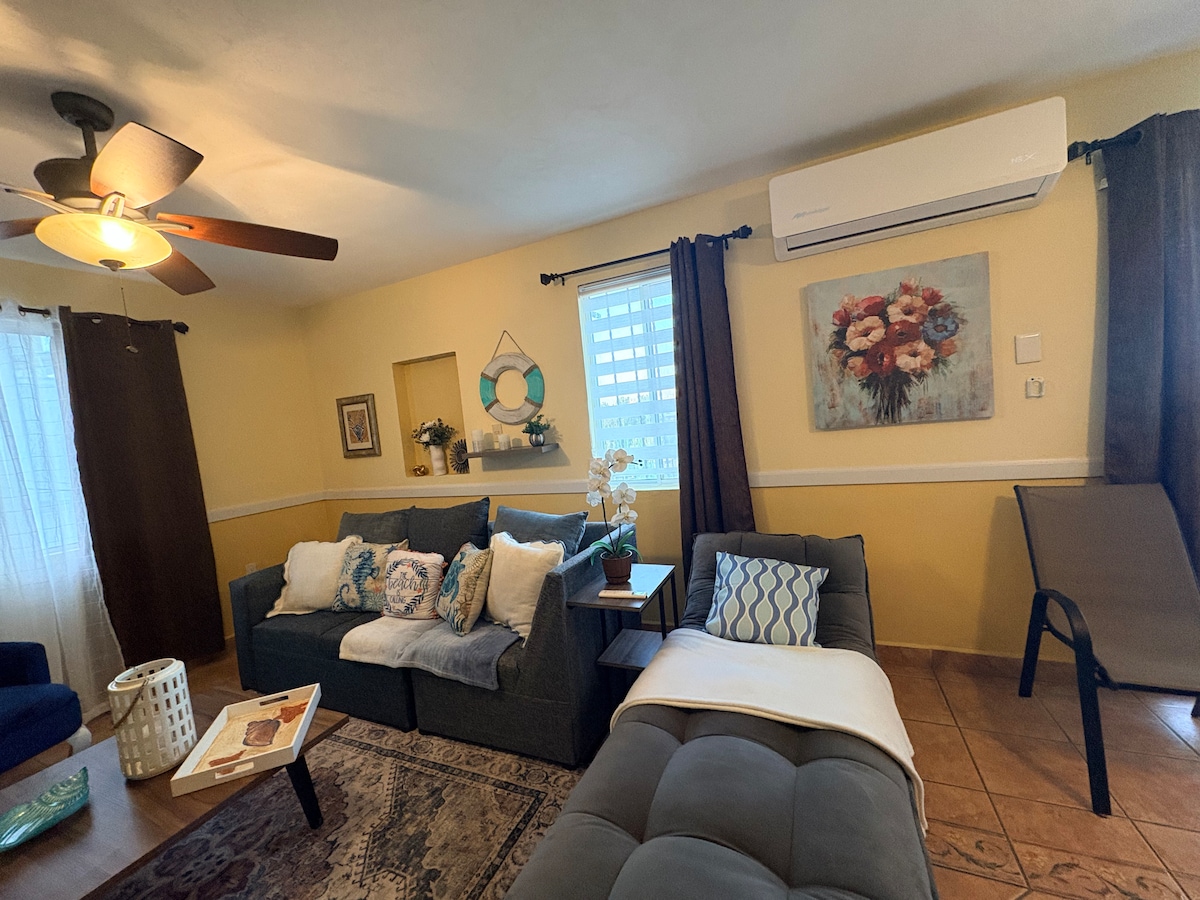 Departamento muy comodo lleno de color y arte de 1 recamaras1 baño, sala comedor y cocina, patio de servicio con lavadora y secadora , sin escaleras, con estacionamiento, mesa de jardin con sombrilla donde desayunar o cenar puede ser muy romantico o agradable despues de un dia de trabajo. Cama comoda y limpa, 1 pantalla plana enorme 1 en la habitacion. cocina bien equipada, bar de cafe y te a su disposicion. No se permite fumar ni fiestas. no visitas es un edificio familiar