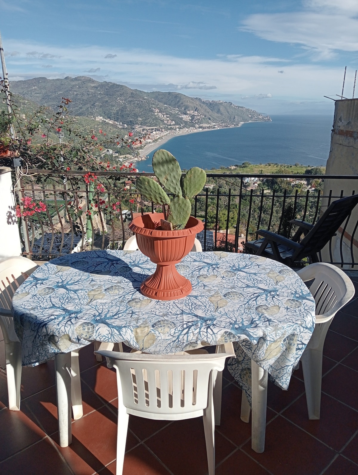 Single apartment, equipped panoramic terrace, central but quiet area, 7 minutes walk from the historic center "Teatro Greco, municipal villa, shops,restaurants, supermarket " .Funny to the beach ,stairs to the island Bella, bus station nearby. Placené parkování 2 kroky odtud. Není potřeba auto. Klimatizace, bezplatné wifi, voda zdarma, ručníky, čisticí prostředky, fén, nádobí, žehlička. Je možné přidat přistýlku.
