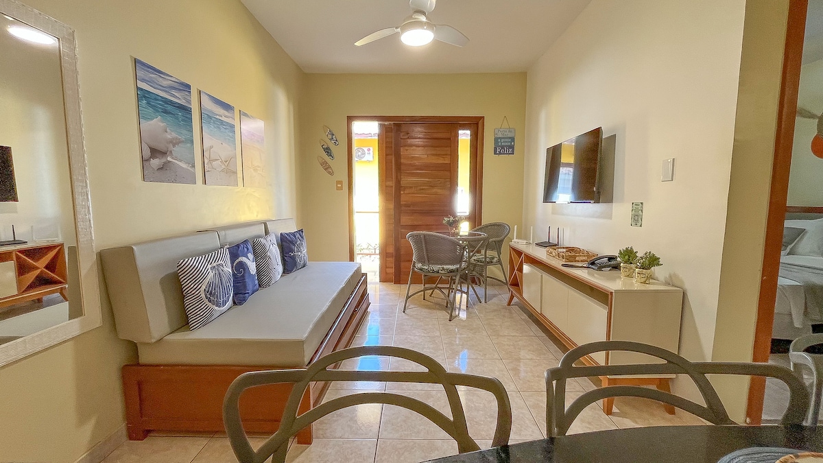 Vítejte! Rádi zde hostíme a naším cílem je sloužit! Ach... kondominium je „před pláží Taperapuan“, nejžádanější v Porto Seguro. Krásný apartmán, prostorný, kompletní, dobře zařízený. Budete velmi blízko všeho a pokud budete chtít, můžete všechno udělat pěšky. Pár kroků od vás jsou restaurace|bary, italská, japonská, supermarket, pekárna, kavárna, pivnice, pizzerie, dětský koutek a mnoho dalších atrakcí. K dispozici je také food truck. Budete v srdci Porto Seguro!