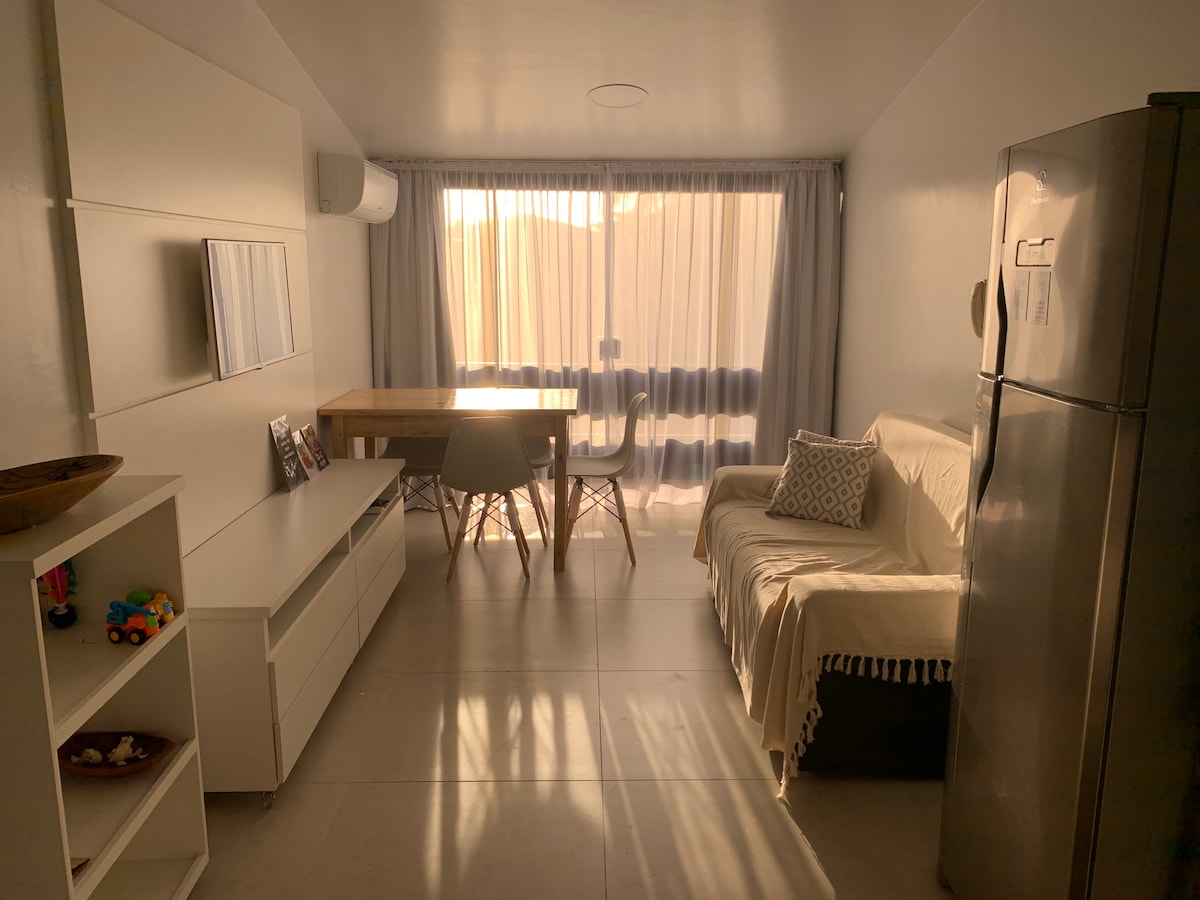 Útulný 🌴 apartmán v Porto Seguro! S pohodlnou ložnicí s manželskou postelí velikosti „queen“ a jednolůžkovou postelí, klimatizací, bavlněnými prostěradly o hustotě 400 pramenů, ručníky z egyptské příze, velkým obývacím pokojem s balkonem, kuchyní vybavenou pro vaše každodenní potřeby a prádelnou. Pohodlí, soukromí a praktičnost pár metrů od pláže. 💕 Ideální pro odpočinek, zábavu a pocit domova💛 Rezervuj hned a užij si báječné dny v Bahii! ☀️🏖️