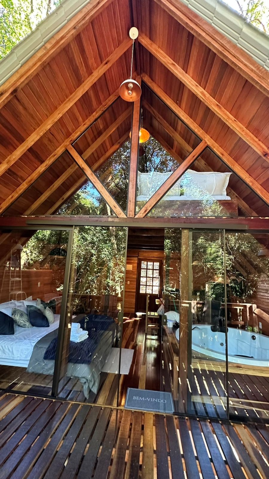 LUXUSNÍ chata ve stylu A-Frame, která se nachází několik minut od Gramada. Cabana Araucária je útočištěm pro zážitky plné šarmu a sofistikovanosti, s bujnou přírodou obklopenou Araucariami a s úchvatným panoramatickým výhledem. Naše chata dokáže spojit pohodu, útulnost, přírodu a spoustu pohodlí. Je to dokonalé místo pro nezapomenutelné chvíle, které pozvedne zážitek z ubytování na úroveň velmi rafinované atmosféry.