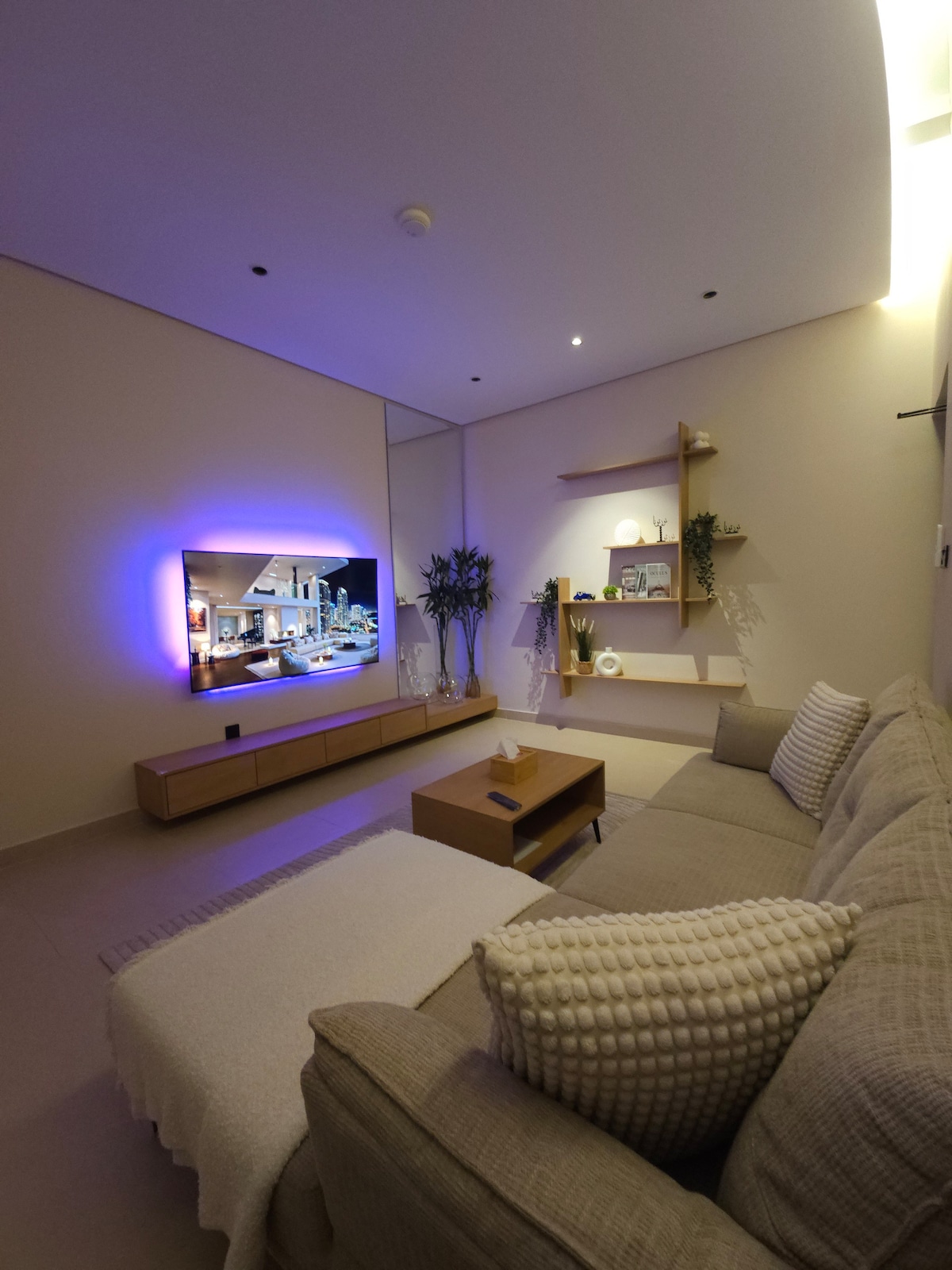 Welcome to your elegant getaway! This luxury 1-bedroom apartment offers a perfect blend of modern comfort and sophisticated design. Thoughtfully furnished with stylish interiors, high-end finishes, and warm ambient lighting, this space is designed for both relaxation and productivity.