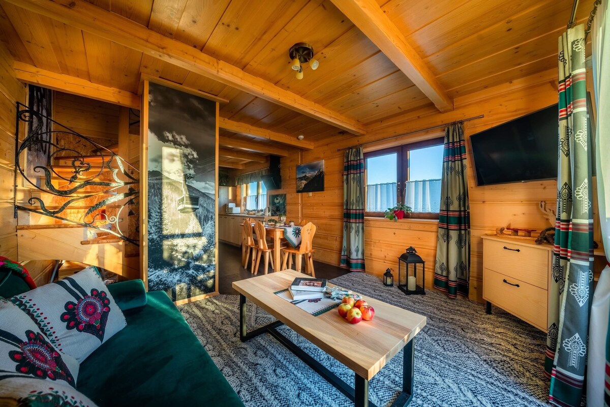 Luxusní chalupy s úžasným výhledem na Zakopané a panorama Tatry. Nachází se ve vesnici s hodnocením Ząb v Polsku. Plně vybavené chalupy. Obývací pokoj s posezením, kuchyňským koutem, koupelnou a dvěma ložnicemi v patře. The cottages are decor in highlander style, with an electric fireplace. Kasprowy's cottage has a huge terrace with a hot tub and hot water. K dispozici je také samostatný gril s krbem.