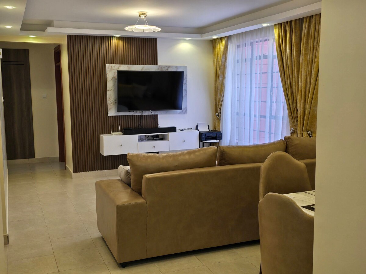 Oddechni si v mém klidném moderním bytě se 2 ložnicemi a 2 koupelnami v Unity Homes v Tatu City. Užij si luxusní vybavení, jako je rychlá wifi, nonstop ostraha, bezplatné parkování, vnitřní a venkovní posilovna, bazén, supermarket s možností nákupu, supermarket Naivas, bistro Courtyard, basketbalové hřiště, dětské hřiště a fotbalové hřiště Užij si pohodlí s pračkou a sušičkou přímo v jednotce. Bavte se díky 2 chytrým televizorům s Netflixem, YouTube, živým vysíláním a Googlem. Rezervuj si klidný pobyt ještě dnes!