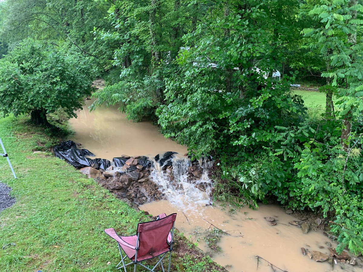 Jedná se o jedinečnou jednopokojovou chalupu vedle vodopádu a ohniště. Wifi. Chytrá televize, klimatizace a topení. Vysoká toaleta, teplá sprcha, kuchyňský kout s varnou deskou. A creek walk out back that is as beautiful, as any hike in WV. Pro zveřejnění, za velmi chladných nocí, když je pod bodem mrazu, může být v ubytování trochu chladno. Máme přikrývky navíc a nikdo neřekl, že je příliš zima, a to ani za chladných nocí. Doplňkové trailové kolo s helmou, káva s pravou smetanou a medem. Podívej se na svědectví mnoha.