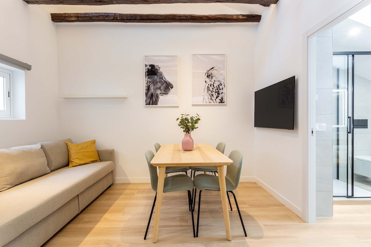 Pohodlný, světlý a kompletní apartmán s kapacitou pro 3 osoby, v historickém centru Madridu. S televizí, WIFI, dvěma klimatizačními jednotkami (jedna v obývacím pokoji a jedna v ložnici), pračkou, plně vybavenou kuchyní a veškerým vybavením, které potřebuješ pro dokonalý pobyt v Madridu! Manželská postel o rozměrech 160 x 200 a jedno samostatné lůžko o rozměrech 90x200 na tebe čeká, aby sis pohodlně odpočinul/a. Pěšky nebo městskou hromadnou dopravou se snadno dostanete k hlavním turistickým atrakcím Madridu.