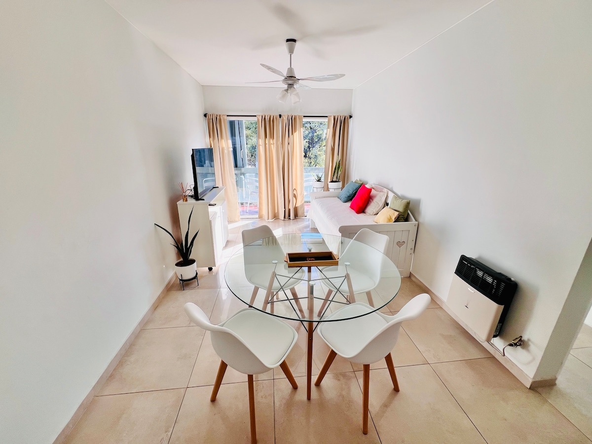 Mendoza mi připadala jako domov. Nachází se v samém srdci města. Oblast barů a nejdůležitějších náměstí v Mendoze. Jeden blok od chodce. Užij si pohodlný a poutavý prostor. Byt je zcela nový, 50 metrů kryté plochy a má pokoj s horní postelí a šatnou, TV a klimatizací, koupelnu s fénem, šamponem, kondicionérem, kuchyň s kamenným ostrůvkem, obývací pokoj s TV, rozkládací pohovkou a klimatizací, pračku. Placené parkování. Infuze zdarma!