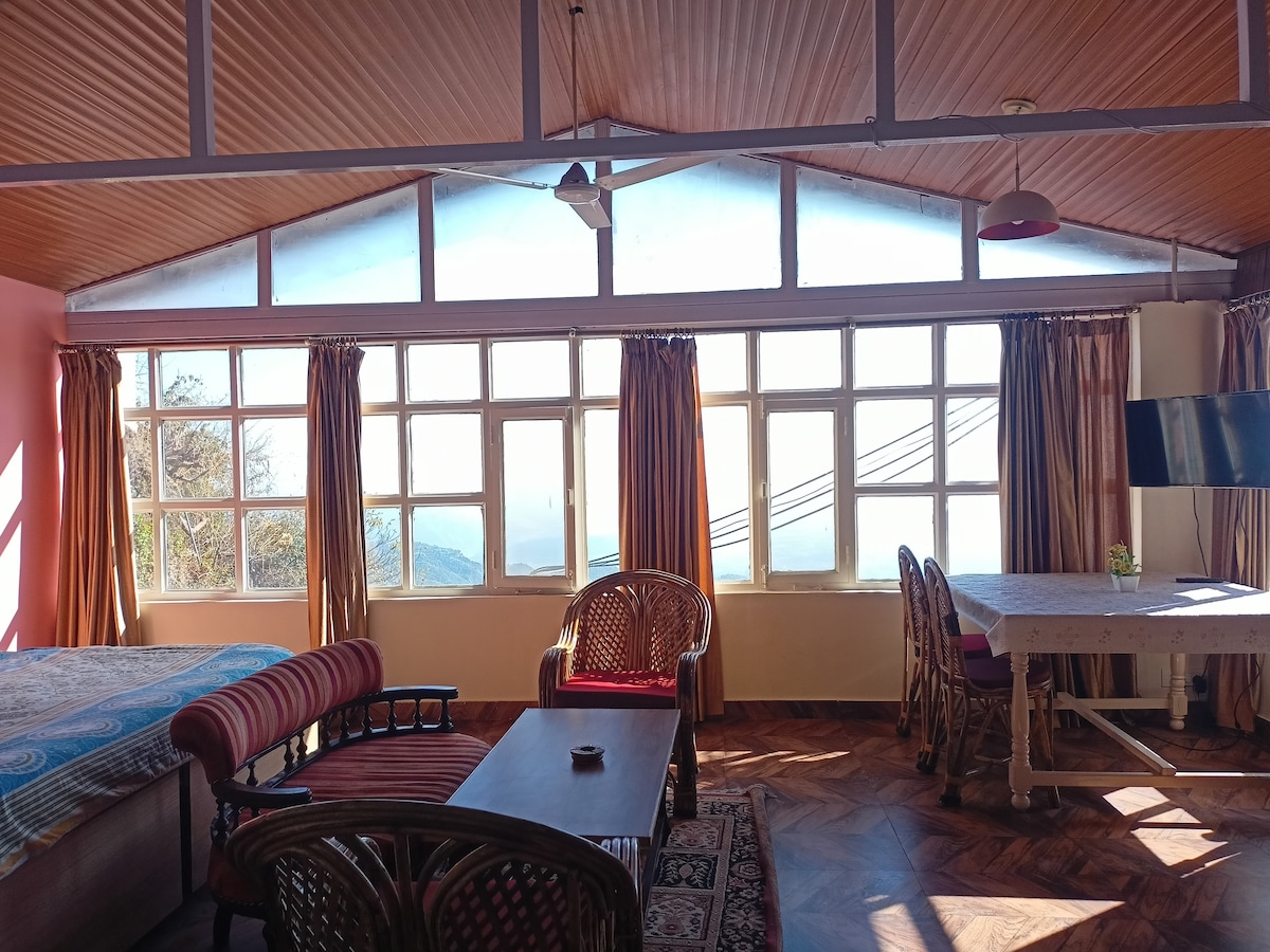 Ideální pro pár nebo čtyřčlennou rodinu! Zapomeň na starosti v tomto prostorném a klidném prostoru. Užij si 360° výhled na hory a odpočiň si na posteli! Získáš také ~4000 čtverečních stop otevřené terasy s krásným výhledem. Kovová cesta k nemovitosti je široká a rovná. Penzion je prostorný s ložnicí, 2 připojenými koupelnami, plně vybavenou kuchyní a pokojem navíc s postelí. - 20 km od Mussoorie - 2 km od yatra Helipad - WiFi zdarma, Netflix - Klimatizace - Slavné jídlo v okolí