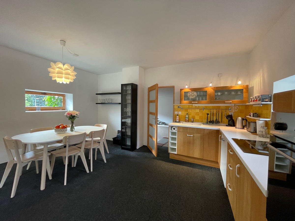 Zažijte pohodový luxus v naší nádherné vile v Teplicích, která je jen 10 minut jízdy od města Teplice a 40 minut od Prahy. Ideální pro rodiny nebo skupiny, odpočiň si u rozlehlého soukromého bazénu, vychutnej si venkovní stolování s venkovním grilem nebo vyzvi přátele na kulečník. Kola, trampolína a basketbalový koš nabízejí zábavu pro všechny věkové kategorie. Uvnitř se nachází útulný a elegantní interiér s útulným krbem – navržený pro pohodlí, relaxaci a nezapomenutelné vzpomínky.