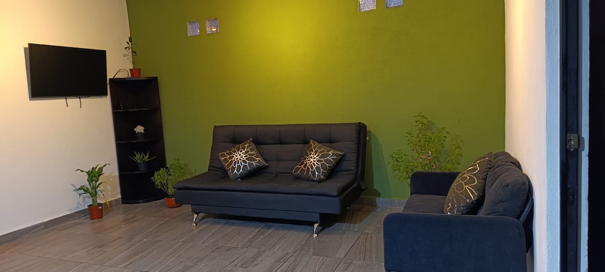 Moderní studio v Oaxtepec Morelos, ideální pro strávení několika dní s partnerem, rodinou nebo přáteli. Zveme tě, aby sis užil/a klidný pobyt s veškerým vybavením a pozorností, kterou potřebuješ k odpočinku. Prostor je navržen a připraven s láskou k tvému příjezdu, má 1 ložnici, vlastní koupelnu, Smart TV, terasu, gril, vybavený kuchyňský kout, obývací pokoj a jídelnu, kromě toho, že si můžete vychutnat bazény, posilovnu, střechu, vířivku a další. Vůbec nebudeš muset chodit ven, vítej!