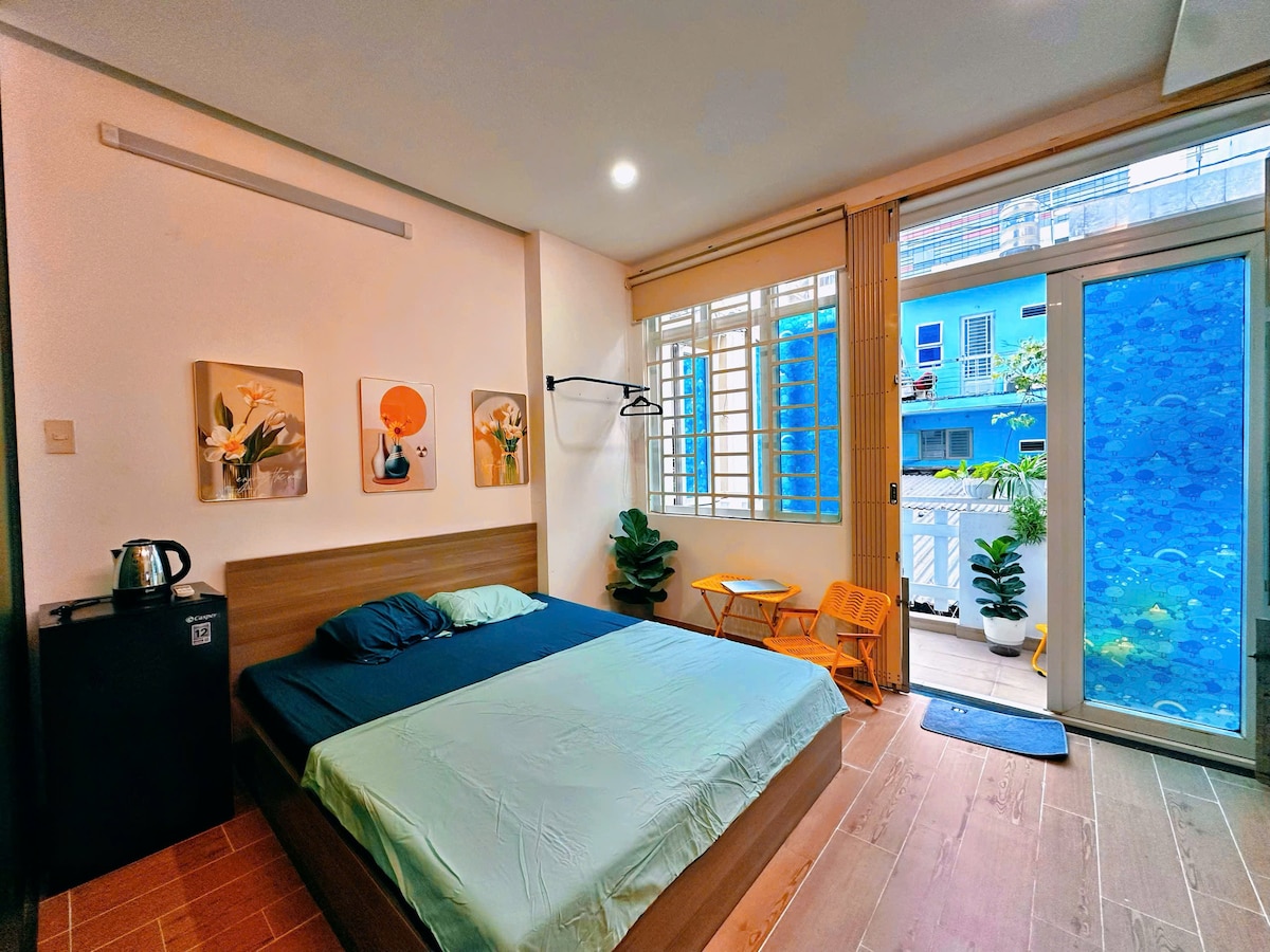Established in 2023, We offer High Quality Short and Long Let Serviced Apartments located right on a busy street with famous cafes, restaurants, Circle K and convenient stores near by and just a few minutes walk to Bui Vien walking street, Tao Dan Park. Cost-effective compared to hotels, we provide 1 BR serviced apartments with privacy, modern style, kitchen, balcony, soundproof door & windows, desk space to work, rooftop garden, elevator, regular cleaning and the comforts of a “Home-from-Home”.