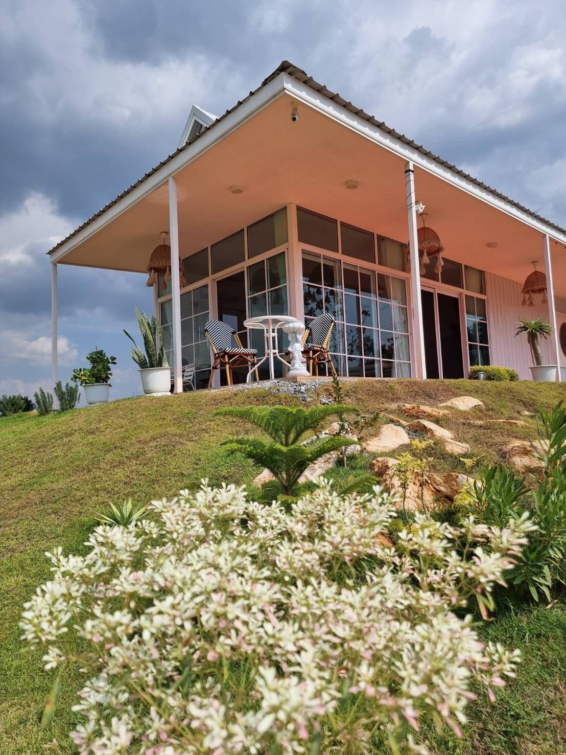 Bílý malý útulný dům s útulnou výzdobou, která bude vyzdobena podle sezóny. You can walk in this 8 Rai, enjoying your own mountain view, English garden, good weather, and cool breeze (approx. 500 meters above sea level). Nebudeš zklamán/a. Tvůj pobyt bude velmi dobře stráven se svou rodinou a miluješ ty.