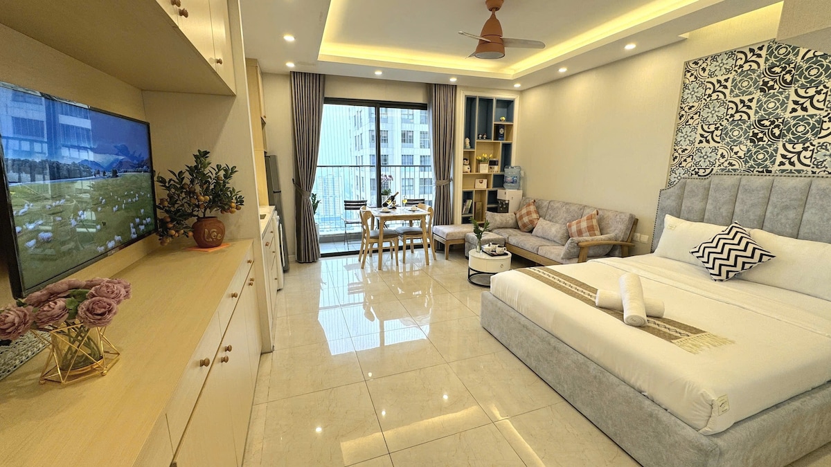 [Volný bazén pro dlouhodobý pobyt od 14 nocí] - Milý můj milovaný host! Můj plně zařízený garsonka je navržena pro klienty, kteří plánují cestovat nebo mají na služební cestu v Hanoji. Náš zbrusu nový byt se nachází ve VINHOMES D'CAPITALE, Tran Duy Hung street, Cau Giay, Hanoi. - Tento nový byt je garsonka s 1 manželskou postelí Queen, 1 vlastní koupelnou a obývacím pokojem. Po náročném – pracovním dni je v kuchyni sporák, lednička, mikrovlnná trouba...