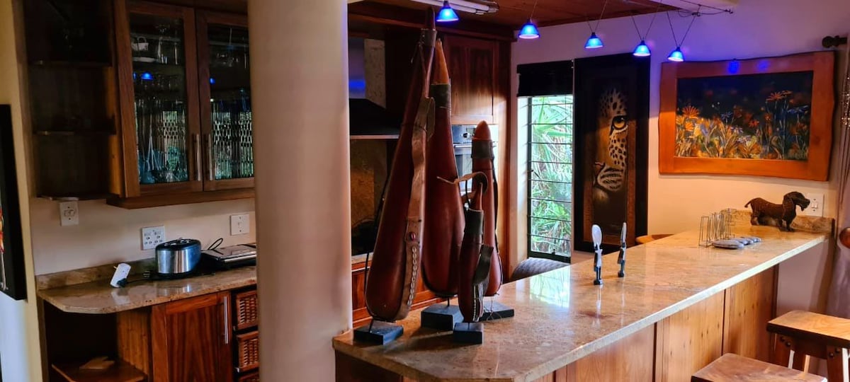 Romantická, klidná a poklidná chata. 4 km od Netcare Pta East. Dokonale zařízená a mimo síť, ideální pro 2 osoby. Manželská postel s velkými skříněmi, vana, obývací pokoj/kuchyňský kout (indukční varná deska), vybavení, bezplatné parkování a společná zahrada v Estate @ Mooikloof, Pretoria. Užijte si klid a bezpečí obklopeni krásnými zahradami s luxusními střešními ventilátory a klimatizací. Skvělé pro práci na dálku. Rychlá Wi-Fi a vyhrazený pracovní prostor, kde se budete cítit pohodlně. Vhodné pro domácí mazlíčky + uzavřený dvorek