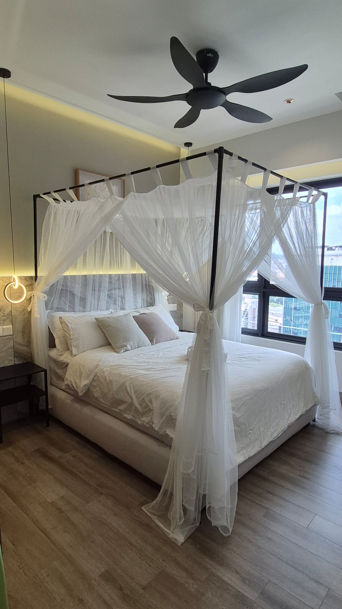 Walk to Twin Towers from a Chic and Modern Condo with a View