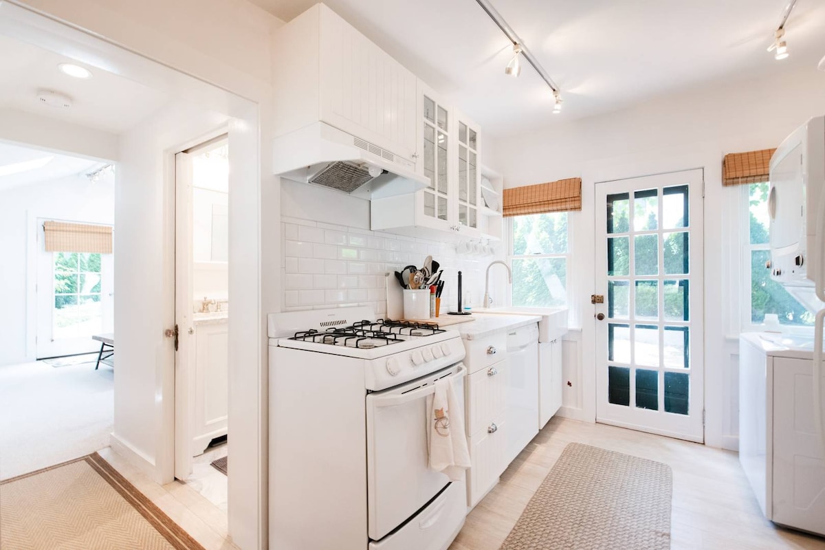 Nově zrekonstruovaný a časopisem New York Magazine označený jako nejlepší Airbnb, The Beach Cottage byl navržen a zařízen v moderním organickém stylu, s paletou bílých a neutrálních barev, které vytvářejí klidný a poklidný únik. Odpočiňte si ve vzdušném, světlém a otevřeném obývacím pokoji, který má skleněnou stěnu pro propojení interiéru s venkovním prostorem a rozsáhlým, nepřerušovaným výhledem na vodu. Zůstaňte v ubytování a užijte si koupání, procházky po pláži, západy slunce a grilování – nebo se vydejte ven a užijte si vše, co North Fork nabízí.