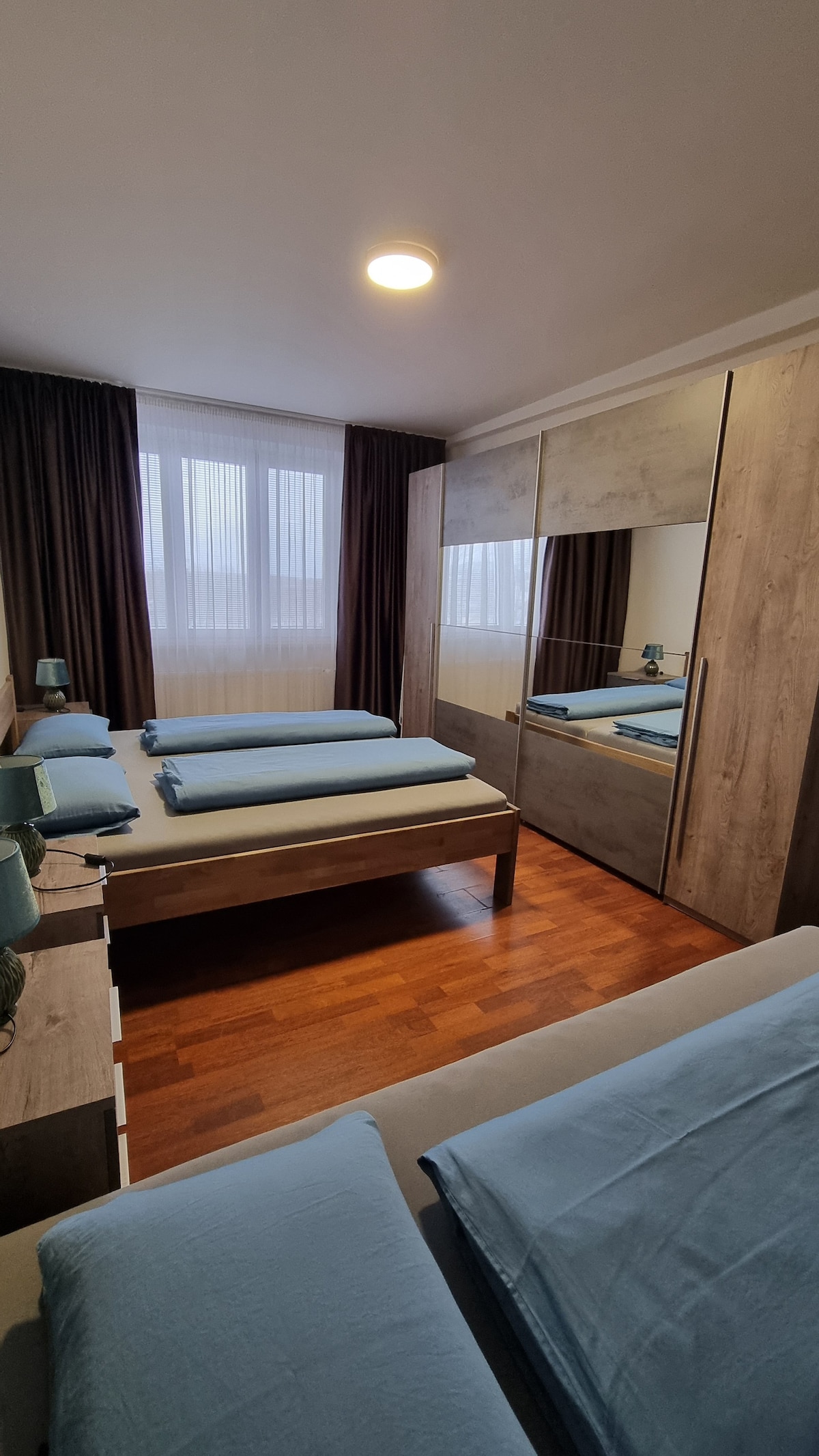 Moderní byt se dvěma samostatnými ložnicemi s dokonalým výhledem na celé náměstí. Samostatné WC a koupelna s vanou. Moderní kuchyňská linka, která má věřím vše, co na svých cestách využijete. Byt se nachází v prvním patře bytového domu nad luxusní restaurací. Jedná se o velice klidný dům a rádi bychom, aby naši hosté byli tolerantní a ohleduplní k ostatním lidem v domě a respektovali to. Těšíme se Vás v Ostravě!