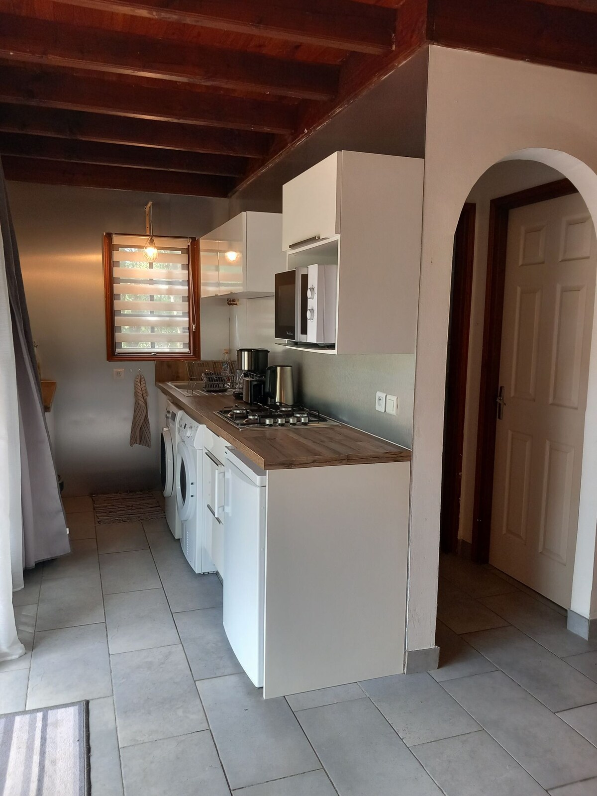 Přijeďte si užít svěží přírodu v této klimatizované chatě F2 se všemi komforty. TV, WIFI, plně vybavená kuchyně (rychlovarná konvice, kávovar, mikrovlnná trouba, plynový sporák s horkovzdušnou troubou), žehlička, ložní prádlo a ručníky, fén, gril. Zvířata jsou povolena za předpokladu, že jsou společenská se psy a kočkami a nevstupují do domu. Velká částečně oplocená zahrada. Klidné místo.