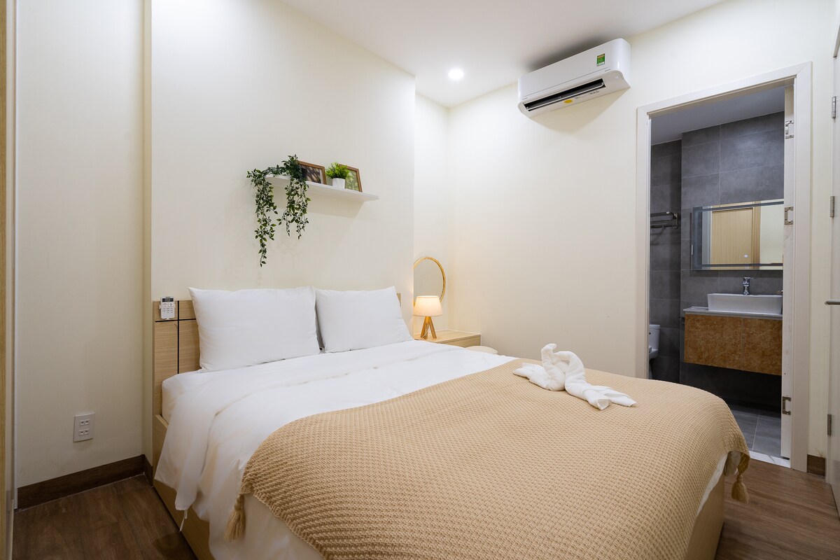 Kim Apartment is an elegant minimalist one-bedroom retreat just 5 minutes from Thao Dien cafés, Vincom Mega Mall, and Metro Line 1. Je vybaven manželskou postelí, vestavěnou skříní, otevřeným obývacím prostorem s vybavenou kuchyní a pračkou a balkonem orientovaným na východ, který je ideální pro výhled na východ slunce s výhledem do dvora. Užij si vysokorychlostní Wi-Fi, kabelovou televizi, klimatizaci, nonstop ostrahu a rychlý výtah. Tvůj butikový dům v Ho Či Minově městě čeká.
