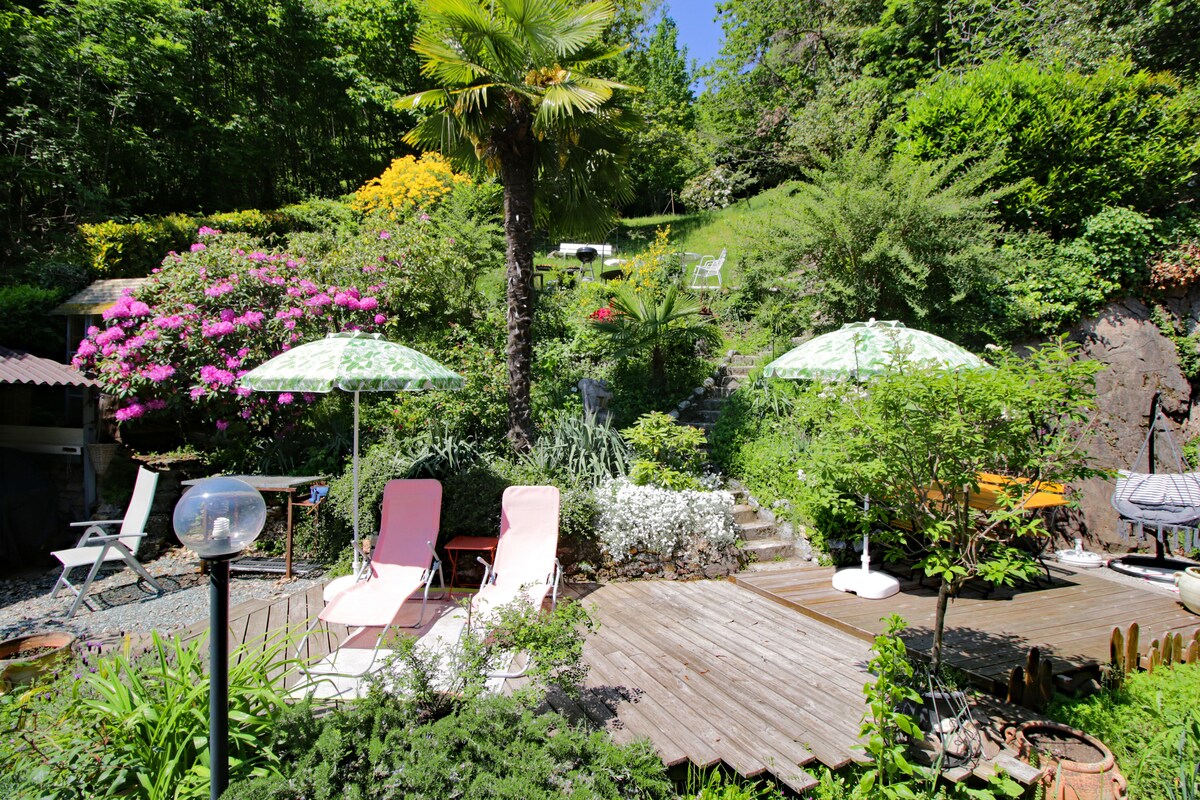 Rustico immerso nel verde,vicino al fiume e alle sue spiagge, roccia per l'arrampicata a 30m, klettern, a 200m Bus per Locarno e Ascona (5km) 10 min A PIEDI dalla strada su sentiero. Minimo un adulto di 27 anni. Ci sono 3 case (totale 15/17 letti.)in gennaio la temperatura in casa è di max 16 gradi Lenzuola e asciugamani 25.-chfr per persona. prenotazioni inferiori ad una settimana sono accettate solo nel mese precedente alla data della vacanza. (Short stays only possible as lastminute).