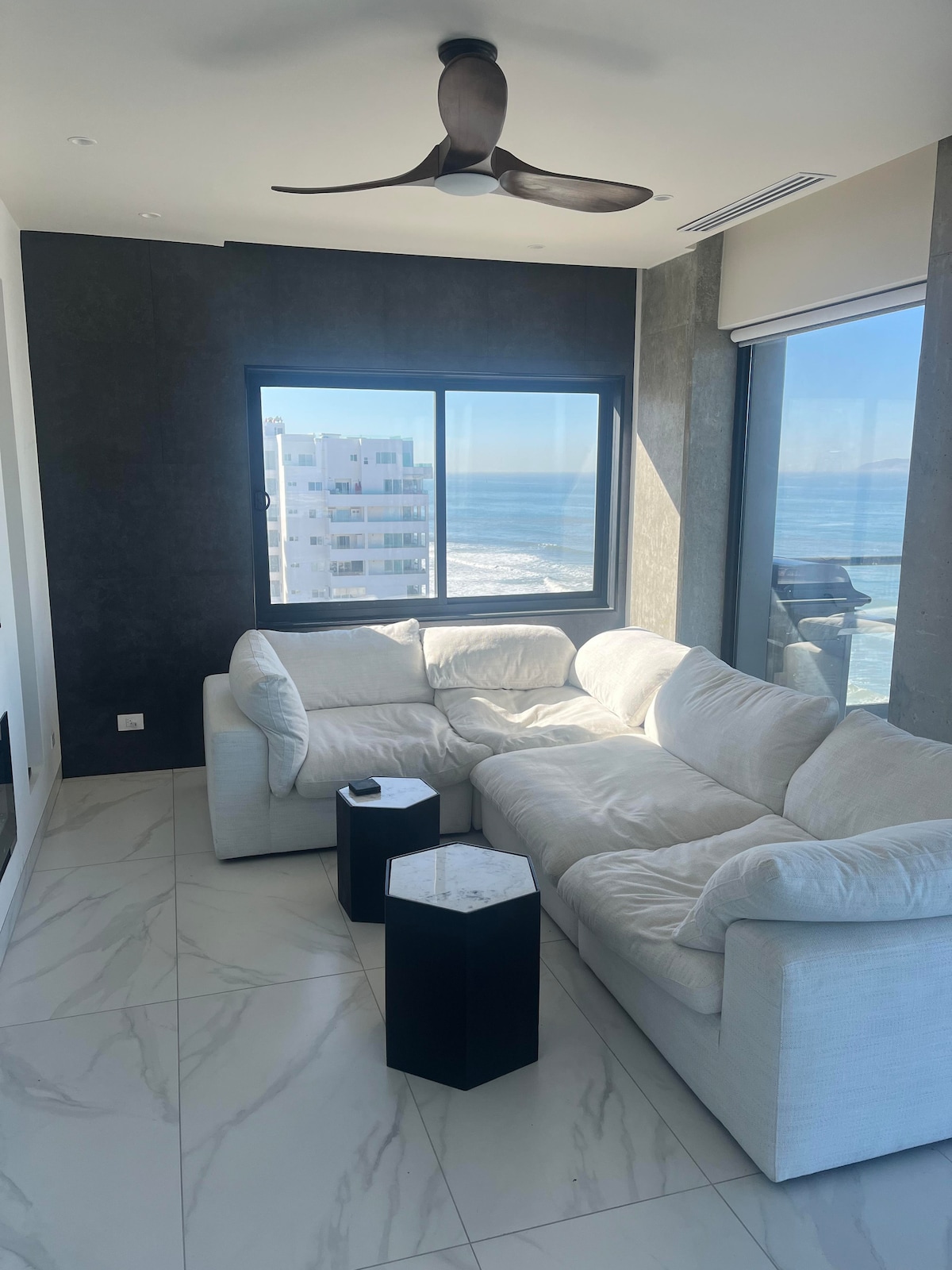 Acogedor departamento con vista al mar, decorado en tonos suaves y cálidos para crear un ambiente relajante, acompañado por el sonido de las olas rompiendo en la playa. Cuenta con cama Queen-size, cocina equipada y un balcón privado ideal para disfrutar de románticas puestas de sol. Este rincón junto al mar es perfecto para parejas que buscan desconectar y disfrutar de una estancia tranquila y especial. El edificio ofrece alberca climatizada y jacuzzi de uso compartido con otros huéspedes.