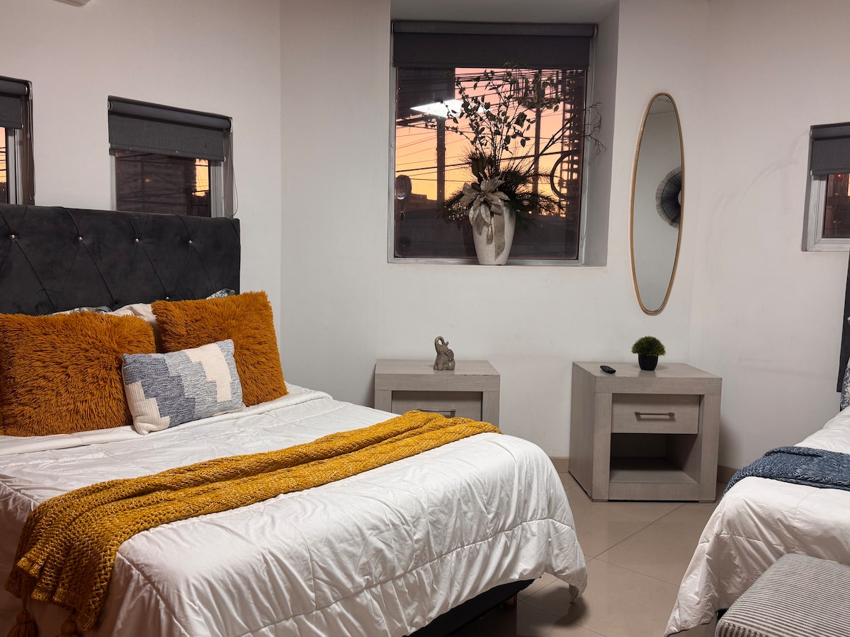 Užij si pohodlí tohoto nového, klidného a velmi centrálně umístěného ubytování. Skvělý výhled a nádherná lokalita jen 5 minut od hranice mezi Mexikem a USA. Jen pár bloků od rušné Av. Revolución. Jen pár kroků od restaurací, nočního života a lékařských ordinací. It has 1 bedroom (1 Queen bed + inflatable matrat), 1 TV 50” with apps: HBO, Netflix, MLB. Kuchyňské náčiní, pračka, sušička a žehlička, fén. Bezplatné parkování s nonstop ostrahou