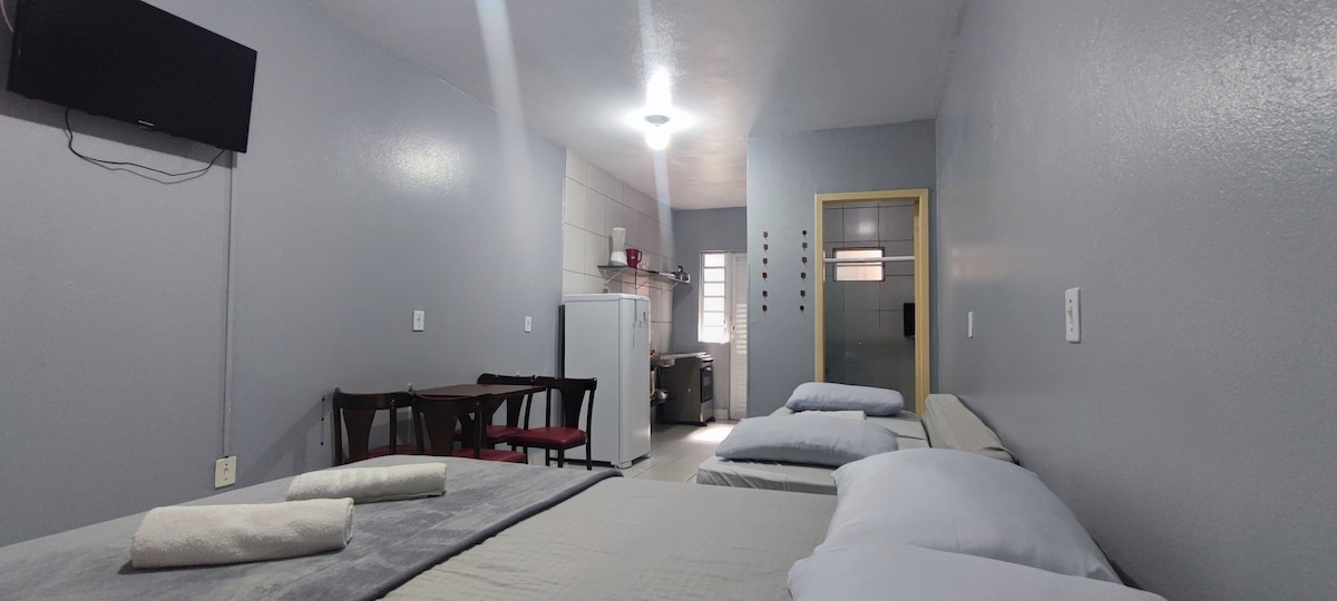 Nejlepší poměr cena/výhody pro pobyt v Tijucas a objevování celého pobřeží Santa Catarina. Nachází se v centru Tijucas, města mezi Balneário Camboriu a Florianópolis. Jednopokojový apartmán, ideální pro dvě osoby. Nabízíme veškeré kuchyňské potřeby, abyste si mohli připravit vlastní jídlo, ložní prádlo, prostírání a osušky. Internet a parkování zdarma. V blízkosti několika pláží, jako jsou Meia Praia, Perequê, Porto Belo, Bombas, Bombinhas a Retiro dos Padres.