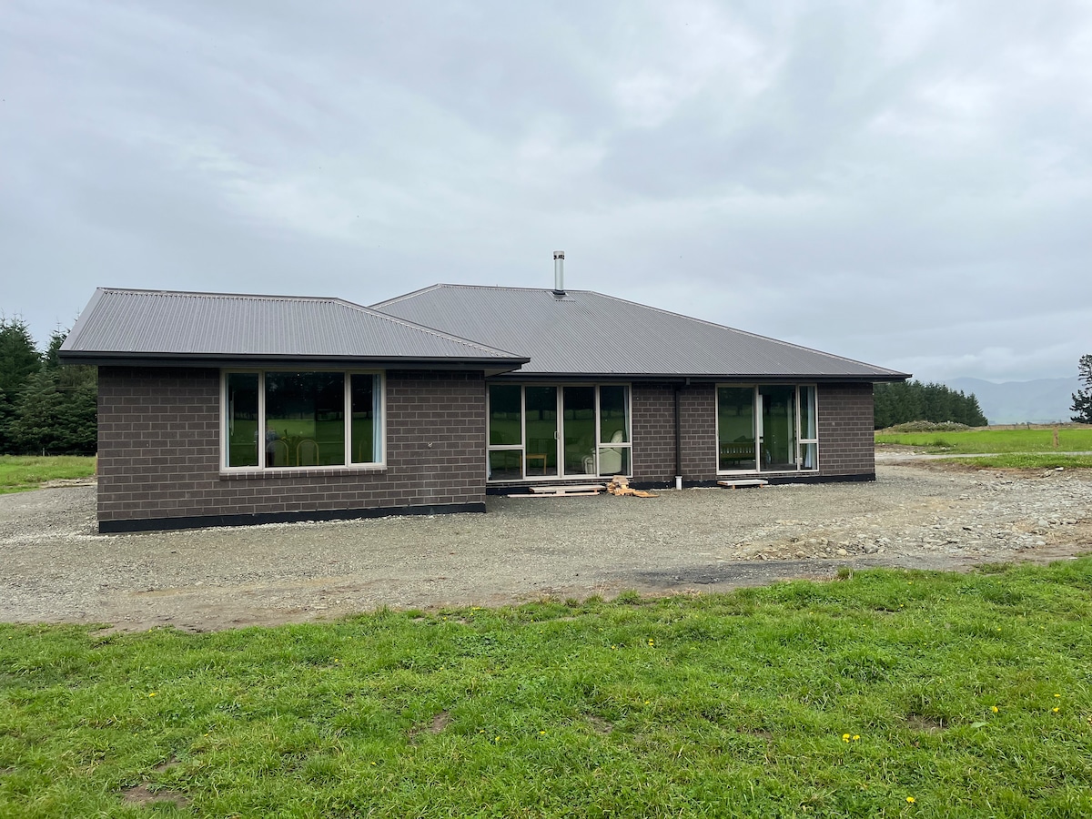 Zbrusu nový teplý slunečný dům se 3 ložnicemi, velkým obývacím prostorem, plynovým krbem, venkovní krytou terasou a grilem. Upozorňujeme, že tento dům je přístupný pro vozíčkáře. V ceně je zahrnuto bezplatné wifi připojení. Dům se nachází mimo hlavní dálnici a je 5 minut chůze od města (supermarket, kavárny, obchody a hřiště), pouze 30 minut jízdy od jezera Tekapo, 10 minut od hory Dobson a pouze 10 minut od jezera Opuha.