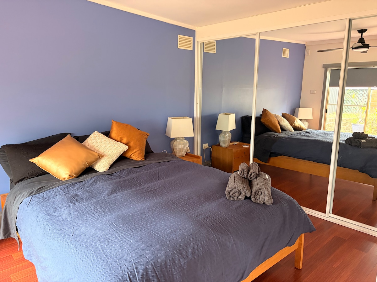 2 ložnice s manželskou postelí v hlavní místnosti; 1 dvoulůžko, 1 jednolůžko ve 2. místnosti; 1 soukromá sprcha/WC); připojeno k mému domu uzamčenými dveřmi. 24hodinový soukromý přístup. Klimatizace, wifi, Netflix, Apple TV. Soukromá koupelna a kuchyňský kout. (Poznámka: Žádné jídelny ani společenské místnosti). Tiché parkování na ulici v blízkosti před domem. Established Organic Food Forest next to National Pk, access famous Fernleigh Track. Pouze 2 km od 2 hlavních nákupních center v Newcastle: Charlestown Square a Westfield Kotara. 15 minut od CBD v Newcastle.