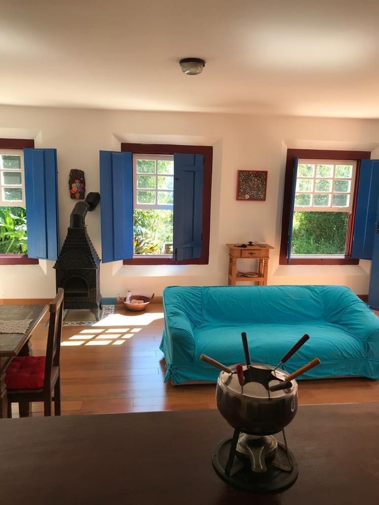 Ubytujte se v nejlepší lokalitě v Tiradentes! Útulný dům v srdci historického centra Tiradentes. Má dvě ložnice s manželskou postelí, zařízené krásným starožitným nábytkem, který zachycuje historii koloniálních dolů. Pokoj s rozkládací pohovkou, chytrá televize a velká a dobře vybavená kuchyně. Venku: vertikální zahrady s květinami, bylinkami, kořením a příjemný stůl, u kterého se můžete s přáteli pobavit na čerstvém vzduchu. Dům nabízí kvalitní ložní prádlo a ručníky.