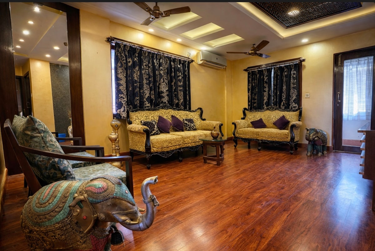 MOST EXCLUSIVE SOUTH KOLKATA AREA SOUTHERN AVENUE LAKES 300m away Minutes from Ballygunge ACCOMODATES 4 GUESTS BASE PRICE FOR 1-2 GUESTS. 3RD/4TH GUEST AT EXTRA CHARGE Openable Sofa Bed in Sitting: 60"x78" mattress FREE ACs, Tea/Coffee Hot shower 150 sft 5th floor FURNISHED TERRACE On road below: Grocery, Breakfast/Meals, Gym, Laundry, Transport, Bar, Salon Nearby: Mall, Jog/Walk Events/Parties ALLOWED: STRICTLY NO NOISE over 10pm-7am: MUST discuss rules & extra charges with Host BEFORE BOOKING