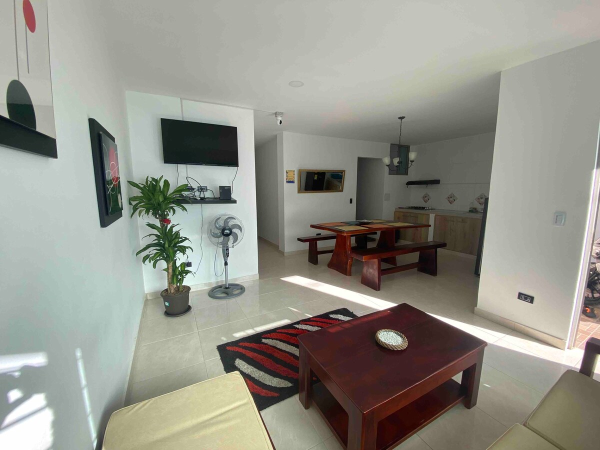 Vítejte v plně vybaveném apartmánu, který se nachází v proslulé turistické oblasti Coveñas. Tento prostor se nachází v Caribe Campestre a nabízí ideální kombinaci pohodlí, funkčního designu a privilegovaného přístupu na pláž, která je vzdálena pouhých 7 minut chůze. Je ideální pro rodinné pobyty, relaxační dovolené nebo jako investice do dovolené s vysokým potenciálem. Užij si klidné a bezpečné prostředí v blízkosti nejlepších místních atrakcí.