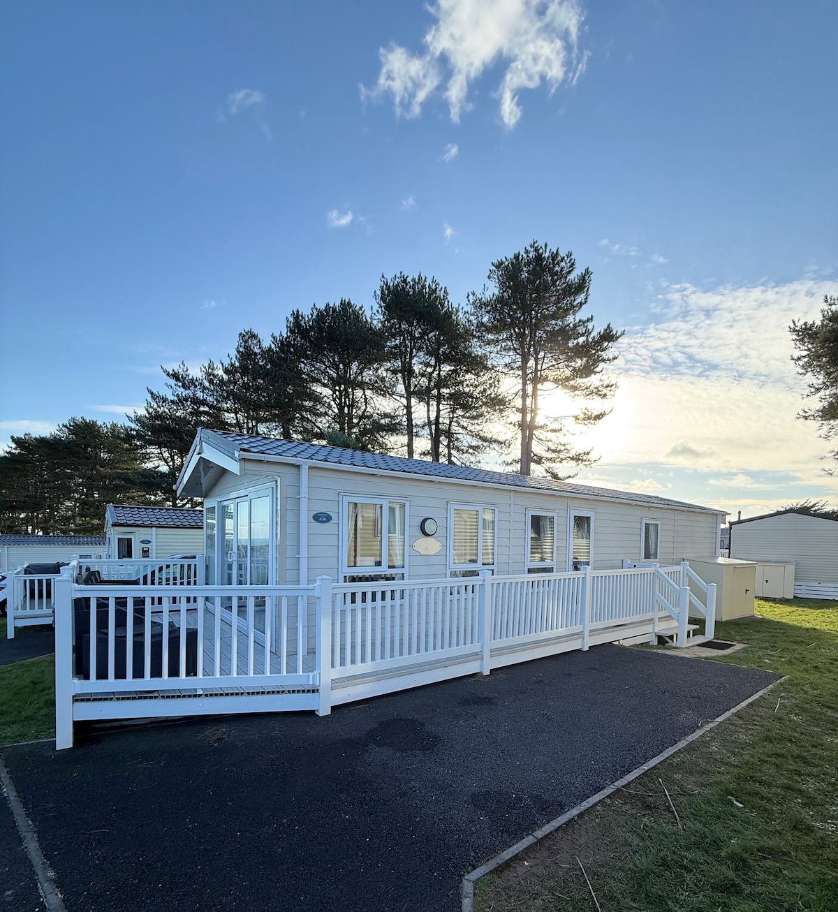 Enjoy a stylish stay in our 2-bed static caravan by the sea in Brixham, perfect for families, couples and dog lovers. This beautifully appointed caravan features a master double bedroom with en-suite and walk-in wardrobe, a second bedroom with two single beds. The modern open-plan living space includes a fully equipped kitchen, plus Wi-Fi throughout. Pet-friendly, peaceful and just moments from the coast — the perfect base for a cosy seaside escape.