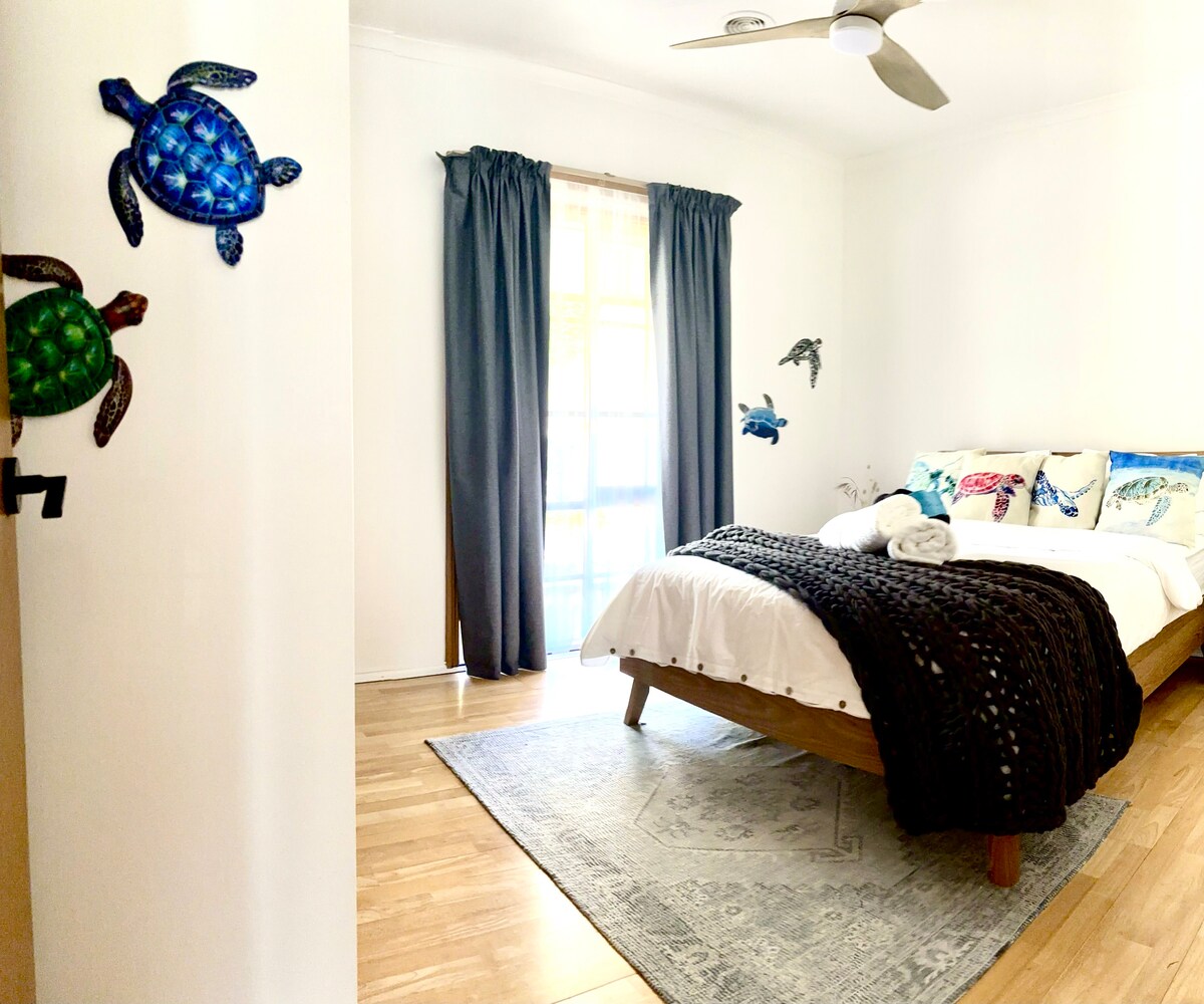 Odpočiň si v našem útulném apartmánu se dvěma ložnicemi a dvěma koupelnami inspirovaným pláží, jen pár minut od Eastern Beach, Geelong City a nádraží Geelong. Užij si uklidňující výhled na vodu ze svého soukromého balkonu, základní vybavené kuchyně a pohodlí vlastního parkovacího místa. Hosté mají také přístup do sdílené posilovny a venkovního prostoru pro grilování. Samoobslužný proces ubytování usnadňuje příjezd. Domácí mazlíčci a kouření nejsou povoleny. Ideální pro páry, rodiny nebo služebně cestující, kteří hledají pohodlný pobyt na pobřeží se všemi nezbytnostmi.