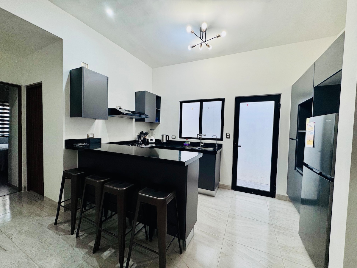 Odpočiňte si se svou rodinou nebo kolegy v tomto novém domě s neuvěřitelným vybavením. La cerrada Má bazén, posilovnu, hřiště, dětská hřiště, vše pro společné použití. Pohodlné ložnice s minisplitem na chlazení a topení. Kuchyně se vším, co potřebujete k vaření a skladování potravin. Dům se nachází v nejmodernější oblasti Torreónu, kde najdete atraktivní restaurace, nákupní centra, obchody s potravinami, kavárny, dětská hřiště atd.