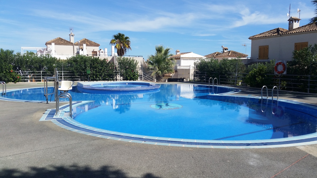 Krásný dvoupatrový dům na rohovém pozemku (postavený v roce 2017) v Entre Golf Villamartin s vlastním vyhřívaným bazénem, malou zahradou a terasou orientovanou na jih. Plně vybavená kuchyň, jídelna a obývací pokoj se satelitní TV/rádiem, trezor. 2 ložnice a 2 koupelny. Klimatizace/topení. Střešní solárium s lounge skupiny, kuchyňský pult a Pergola, alarm, uzavřený pozemek s parkováním.