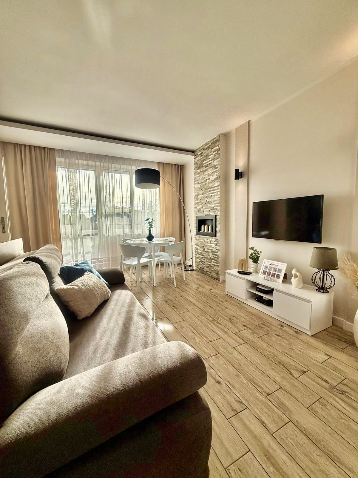Velmi pohodlný a vkusně zařízený byt, který překračuje standardy obvykle nacházející se v podobných nemovitostech. Na místě je ložní prádlo, ručníky, plně vybavený kuchyňský kout s lednicí, myčkou nádobí a tlakovým kávovarem. Volný čas si užijete díky široké škále televize, stejně jako Netflix, Disney+ a Amazon Prime. V ceně pobytu je zahrnuto soukromé parkovací místo v podzemním parkovišti, odkud vás výtah dopraví do patra apartmánu.