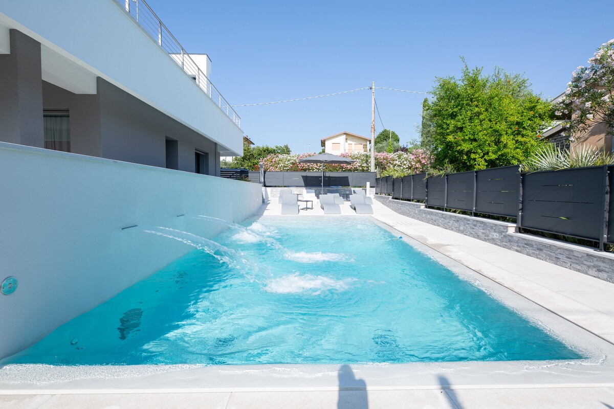 Apartmán o rozloze 54 m² s přímým přístupem k bazénu a zahradě, s panoramatickým výhledem na jezero Garda. Vynikající a soukromá poloha. Možnost využívat zahradu a bazén, soukromí a relaxace ve velkém venkovním prostoru. Moderní stavba z roku 2015. Soukromý a samostatný vchod, velký parkoviště. Důkladné čištění. Naprosté soukromí. Malá domácí zvířata povolena.