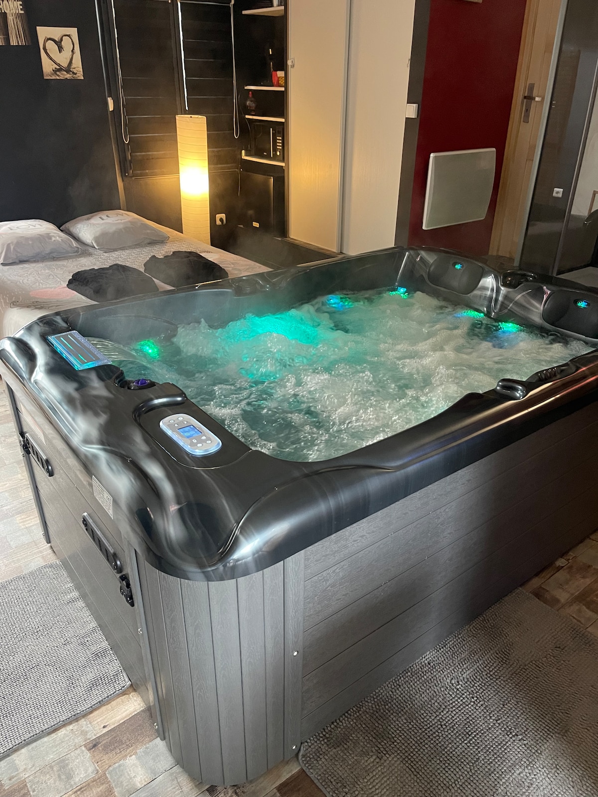 Jolie suite avec jacuzzi, sauna, écran géant