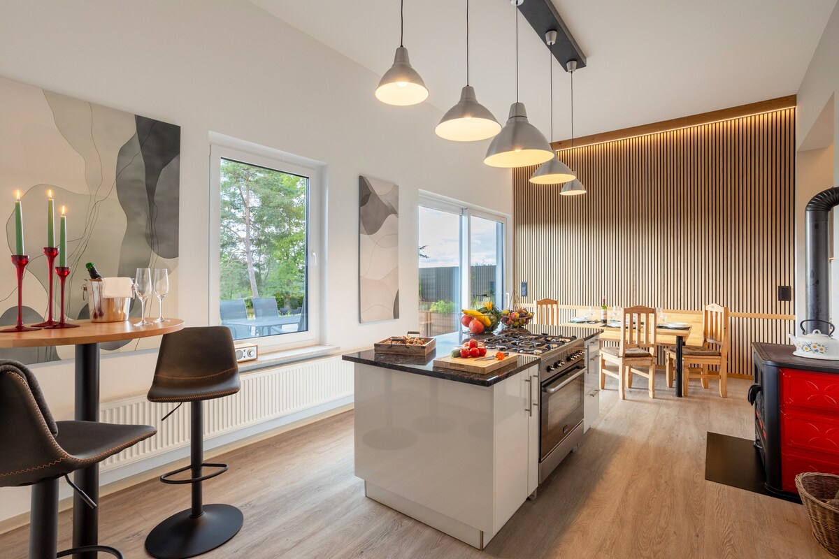Dřevěný dům je vhodný pro rodiny a přátele až pro 10 dospělých. Ubytování se nachází mezi „Maare“ (sopečnými jezery) v sopečné oblasti Eifel poblíž Nürburgringu a nabízí: saunu pro 5 osob, 2 zimní zahrady, jednu s vyskakovacím bazénem, venkovní vířivku s vytápěním na dřevo, ohniště, hřiště, trampolínu, fitness vybavení v domě, stolní fotbal, stolní tenis ve velké dvojgaráži, Netflix, nabíjecí stanici pro elektromobily. K dispozici jsou 2 dětské cestovní postýlky a 2 vysoké židle.