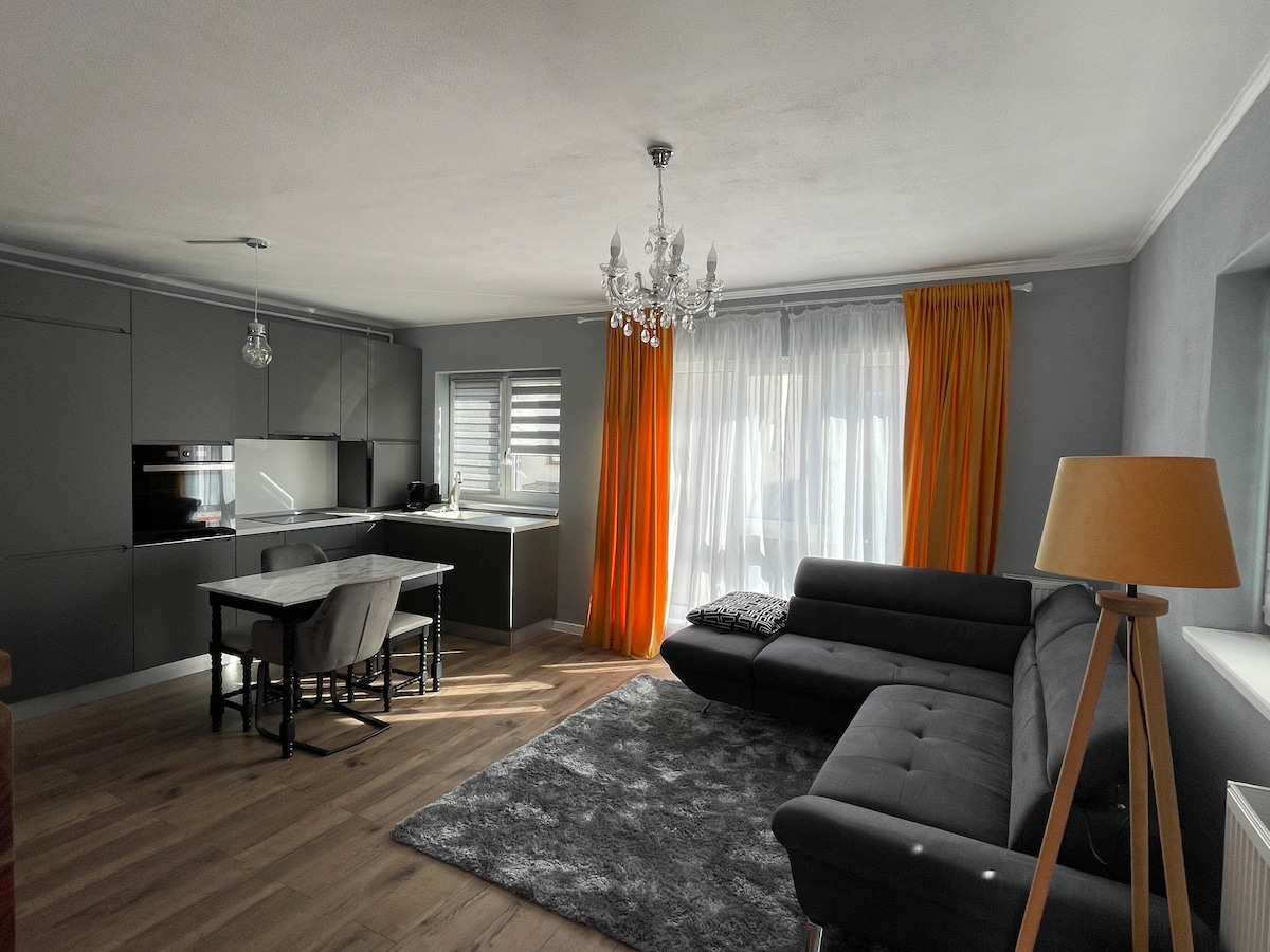 Útulný apartmán v centru Kluže-Napoky, který se nachází 2 minuty chůze od náměstí Unirii nebo náměstí muzeí, velmi blízko několika vysoce hodnocených kaváren, restaurací, muzeí a centrálního parku. Prostorný obývací pokoj. Minimalistická ložnice s přímým spojením do koupelny. Koupelna má středně velkou vanu, sprchový gel, ručníky a fén. Kuchyně vhodná pro vaření a prostorná jídelna. Ideální pro pobyt ve městě s rodinou nebo přáteli, nebo dokonce delší pobyty!
