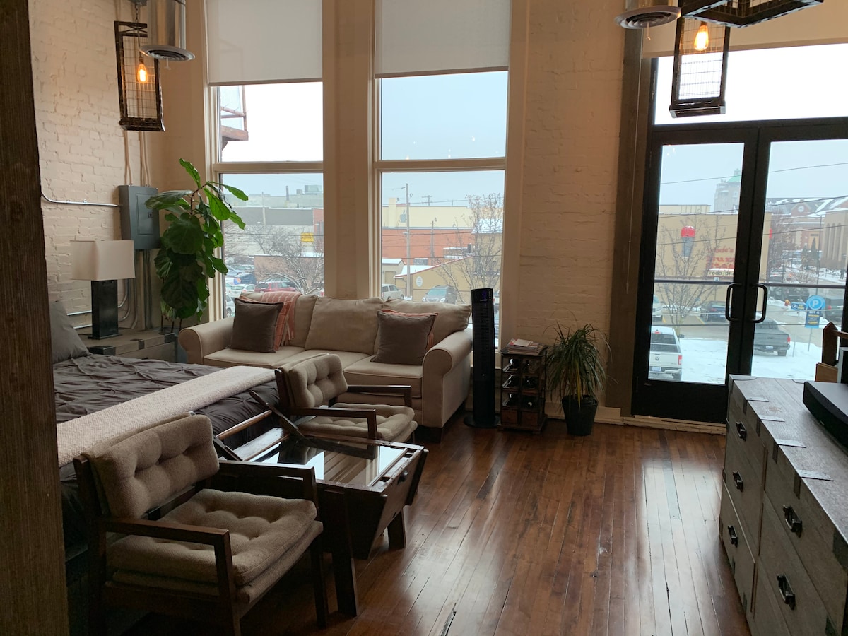 Historic downtown loft apartment right in the center of downtown. If you like being near the restaurants and bars, this is the place for you! In the summer, watch Boyne’s famous Friday night Stroll the Streets from three huge front windows. Open the windows to hear the live music. 2 minute walk to the beach. 2 minute drive to hiking and extensive mountain biking trails. In the winter, you’re just 5 minutes from Boyne Mountain ski resort. Check out their new 8-man lift and suspension bridge!