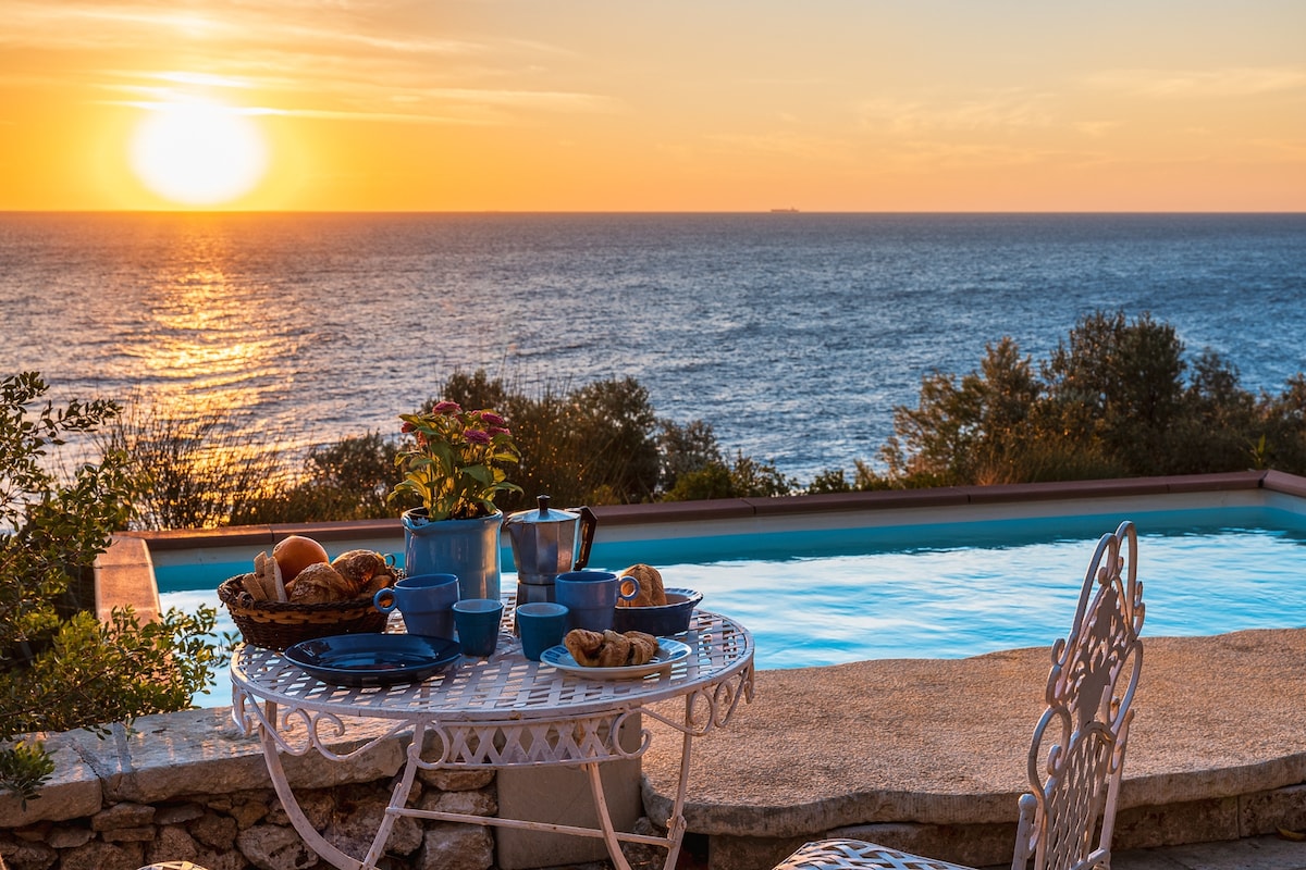 Chata s výhledem na moře, přímý přístup k moři (skály, žádný písek). Ponořte se do přírody. Zažijte klid moře a útesů. Pouze pro milovníky klidu a přírody. Místo není vhodné pro lenochy (náročné schodiště zabudované do přírody s 80 schody spojuje dům s nejbližší silnicí). Užij si tento jedinečný a poklidný zážitek u moře (CIS): LE07508891000025718 (CIN): IT075088B400064565