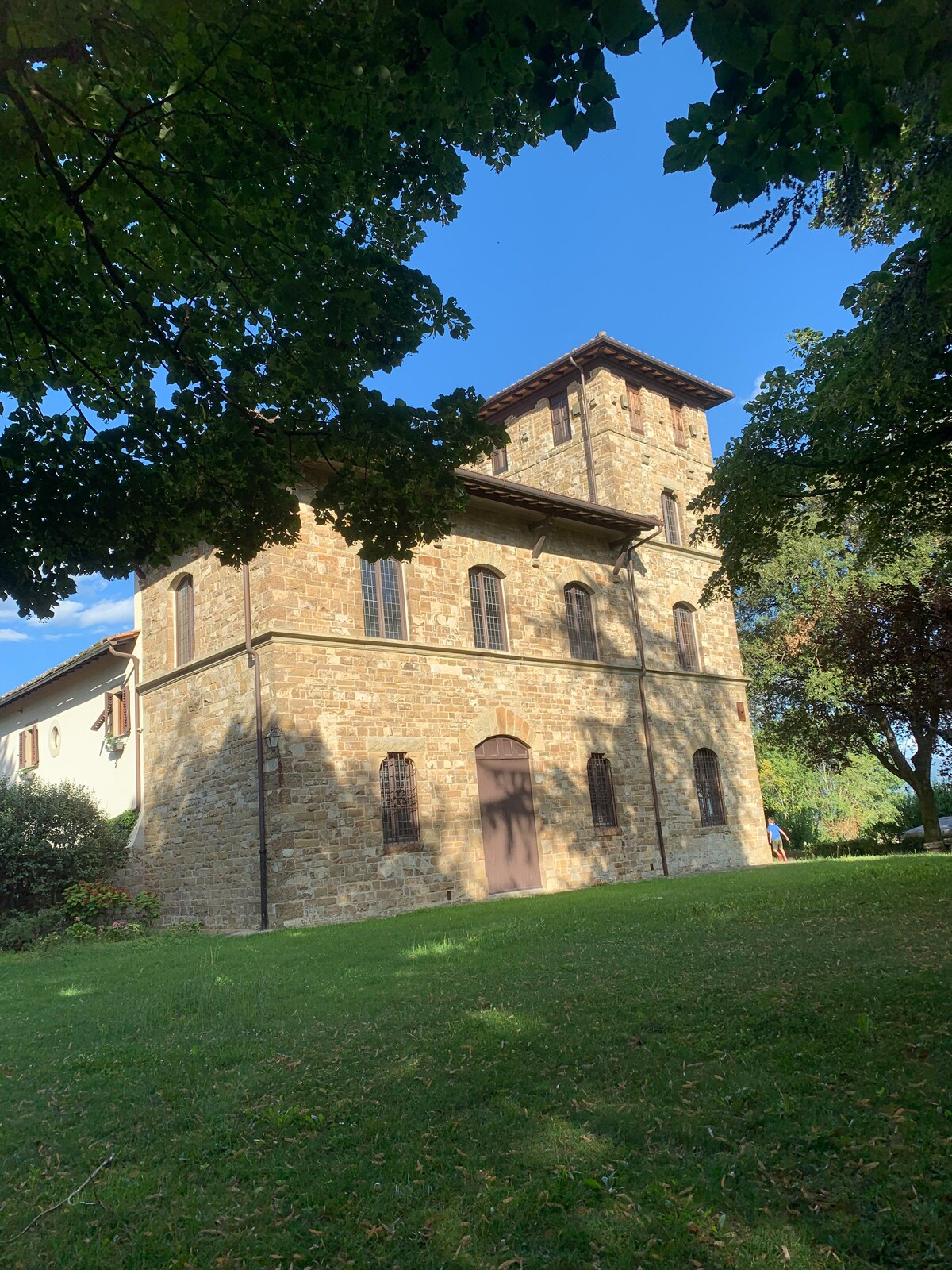 900 let starý byt ve věži-penthouse ve vile Chianti, prostorný a super malebný historický dům, který kombinuje magickou atmosféru s prostorem, světlem, charakterem, pohodlím. Malebný 360° výhled na toskánské kopce až do Florencie; sluncem zalité soukromé pozemky. Perfektní místo pro nezapomenutelný rodinný pobyt. Rozsáhlý soukromý pozemek (včetně lesa). Vesnické obchody jsou v docházkové vzdálenosti. Výhodná lokalita, Florencie na dohled.