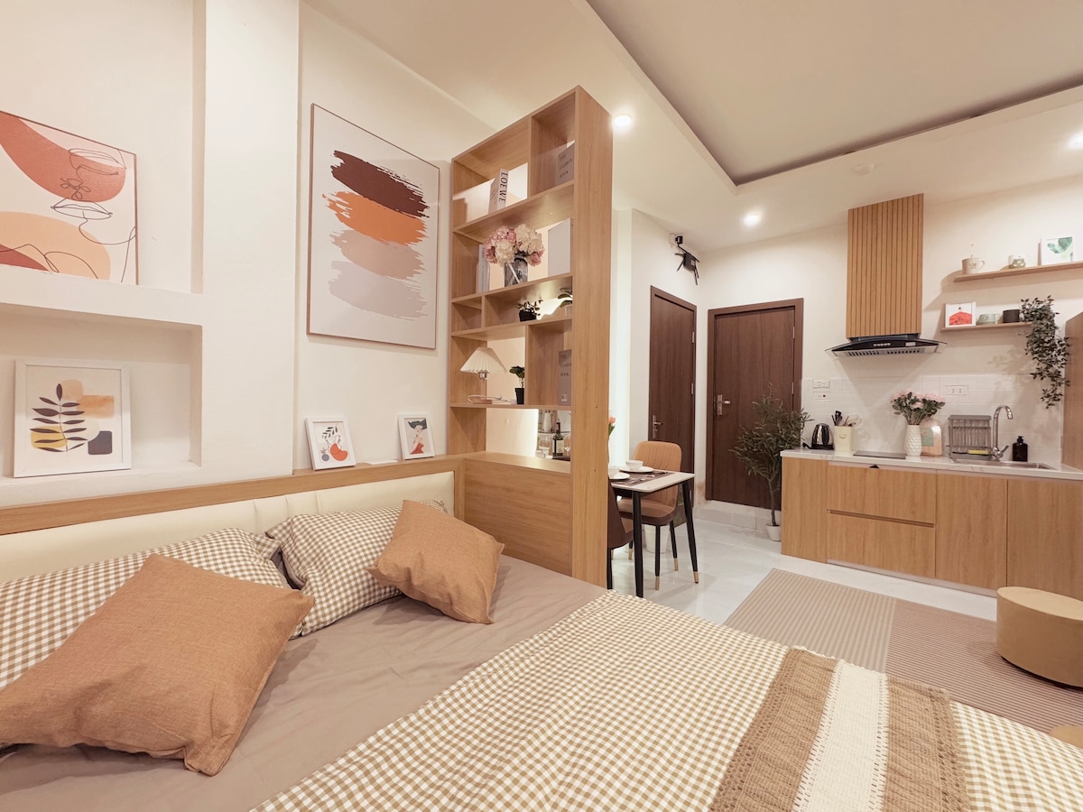 Kora's House je řetězec moderních apartmánů, které se nacházejí ve Vinhomes D'Capitale, jednom z nejlepších míst k bydlení v Hanoji. Každý apartmán je pěkně zařízený, plně vybavený, super čistý a má skvělý výhled na město z nejvyšších pater. Tento nový apartmán je garsonka s 1 manželskou postelí, 1 vlastní koupelnou a obývacím pokojem s pěknou pohovkou pro relaxaci s chytrým televizorem, Netflixem po náročném pracovním dni, kuchyní se sporákem, lednicí, mikrovlnnou troubou...